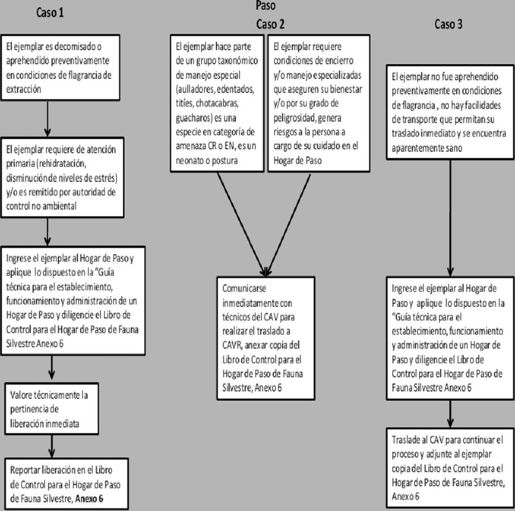 Hogar de paso: Establecimiento donde se reciben provisionalmente especímenes de especies de fauna silvestre terrestre y/o acuática aprehendidos, restituidos o decomisados, para su evaluación, atención, valoración, tratamiento y determinación de la opción para su disposición final.