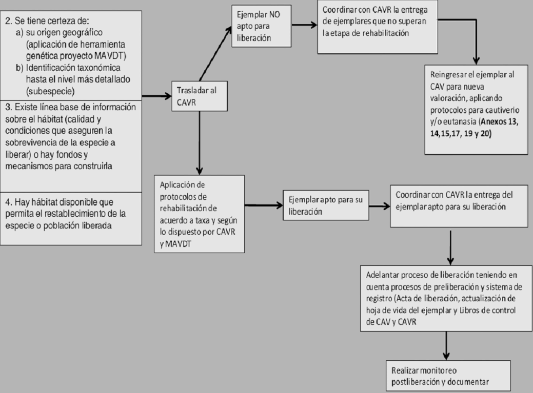 PARÁGRAFO 2o. Los Centros de Atención, Valoración y Rehabilitación – CAVR-, entregarán para su respectivo manejo y seguimiento, los especímenes rehabilitados para posterior liberación, a la Autoridad Ambiental donde se vaya a adelantar la liberación.