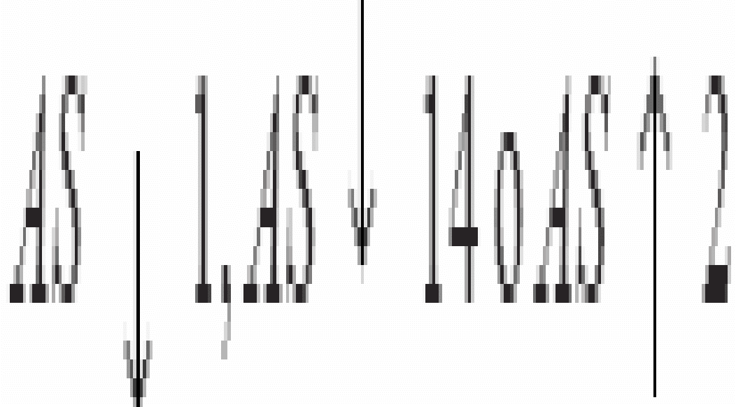 y así sucesivamente. La dirección de la flecha indica la parte del material que cumple el ensayo 2 y el número indica el punto con el que cumple. Esta marcación es adicional a la que se describió anteriormente, que incluye el número del punto apropiado para la parte de la hoja cuya transmitancia no sea inferior a 70%.