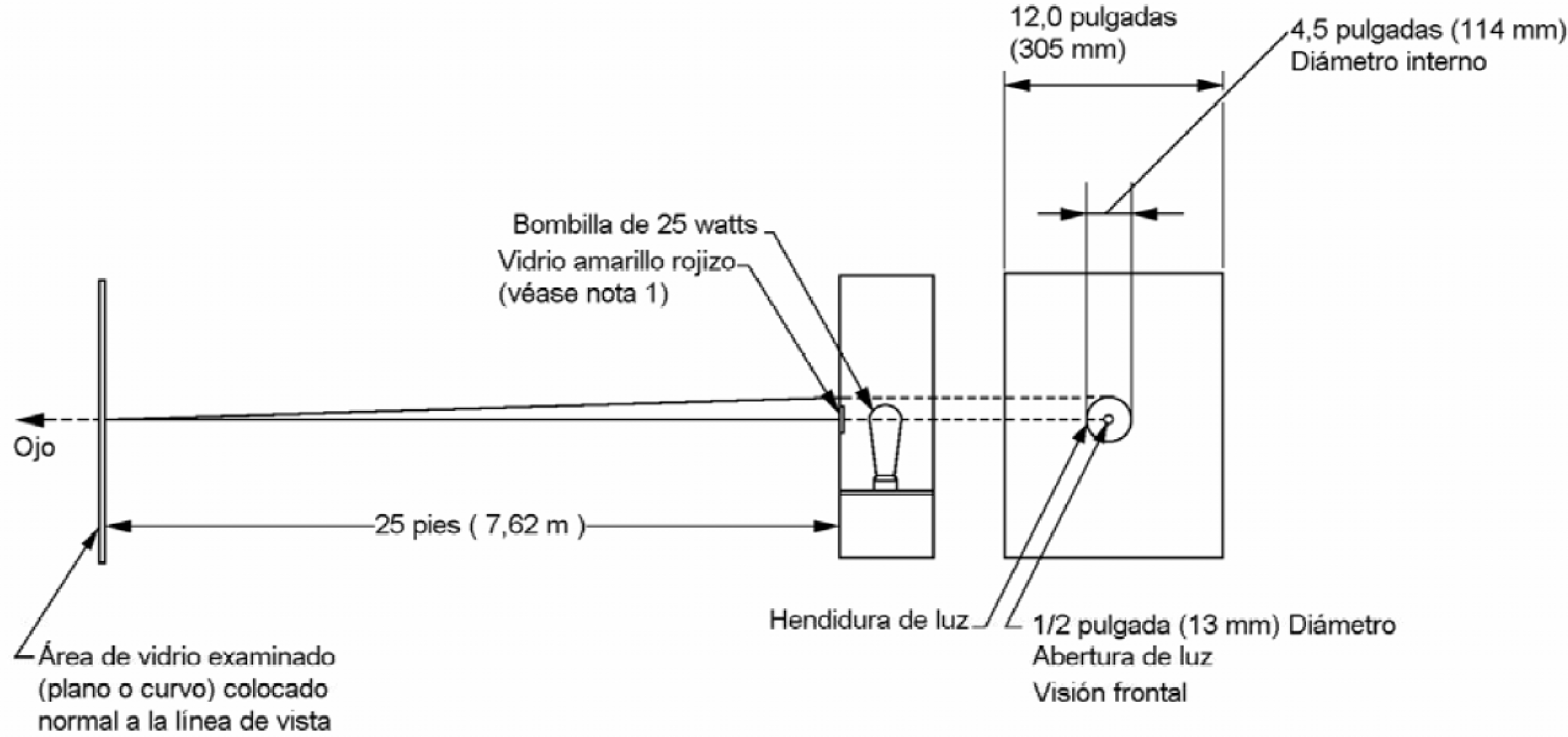 El propósito de este ensayo es medir los efectos de la desviación óptica y la distorsión de la luz de los materiales resistentes a las balas, planos o curvos, o ambos. Para este fin, el procedimiento se divide en dos partes: Desviación óptica (5.32.2.1) y distorsión de la visibilidad (5.32.2.2).