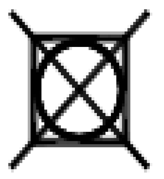 El cuadrado con las dos líneas diagonales en la esquina superior izquierda representa el secado lejos del sol. Este símbolo se coloca sobre los símbolos para secado en tendedero, secado por escurrimiento y secado extendido, para indicar que el proceso de secado natural se debe realizar lejos del sol.