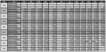 | Tabla 3. | Estadística uso plataforma Blackboard en las Fuerzas Armadas (2012 – 2019) |