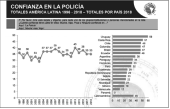 | Gráfico 2. | Confianza en la Policía: total América Latina 1996 - 2018 y totales por país 2018. |