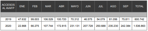 | Tabla 4. | Acceso al AVAFP 2019 – 2020. |