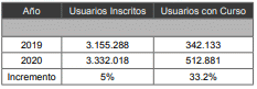 | Tabla 5. | Usuarios con curso e inscritos 2019 – 2020. |