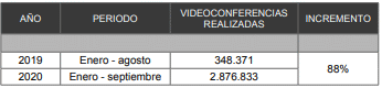 | Tabla 6. | Acceso a videoconferencias 2019 – 2020 |