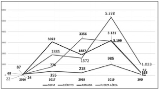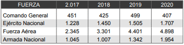 Ministerio de Defensa Nacional (2020e). Matriz de actualización de indicadores por línea de política para el diagnóstico cuantitativo de la PEFuP 2020-2025. Bogotá: Dirección de Desarrollo del Capital Humano, Viceministerio para la Estrategia y la Planeación.