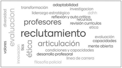 A través del fortalecimiento y la modernización de la estructura educativa se desarrollará la identificación de escenarios para consolidar la imagen de Colombia como líder regional y referente internacional en materia de seguridad, y se revisarán escenarios futuros posibles para seguir modelando a los uniformados que la Institución requiere, mediante la potencialización y auxiliares de policía.