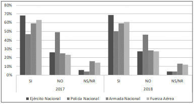 | Gráfico 3. | Confianza ciudadana por Fuerza 2017 - 2018. |