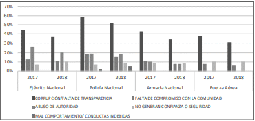 | Gráfico 4. | Motivos de desconfianza ciudadana según Fuerza 2017 - 2018. |