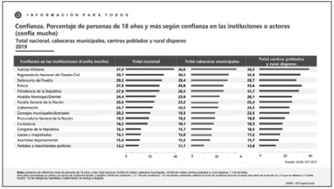 Invamer (2020). Encuesta de opinión pública Gallup Poll. Bogotá. Recuperado de: https://www. elespectador.com/noticias/politica/cae-en-picada-la-opinion-favorable-de-las-fuerzas-milita- res-segun-gallup-poll/
