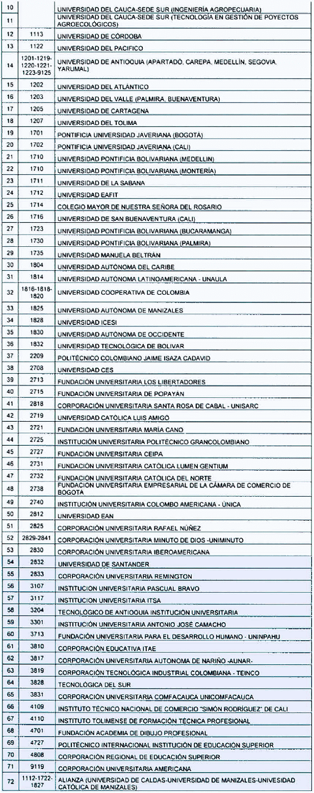 | 3 | UNIVERSIDAD DEL CAUCA-SEDE EL BORDO (INGENIERÍA AGROINDUSTRIAL) |