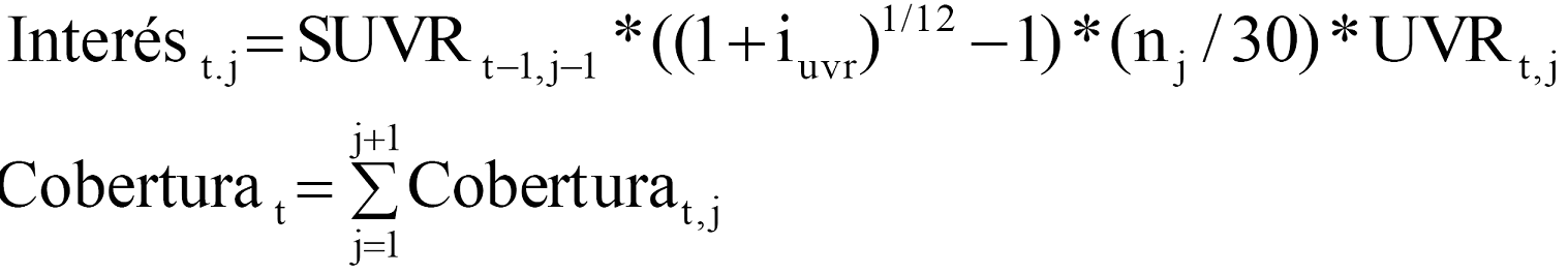 Coberturat=SUVRt-1*((1+Cobi)1/12-1)*(n/30)* UVRt