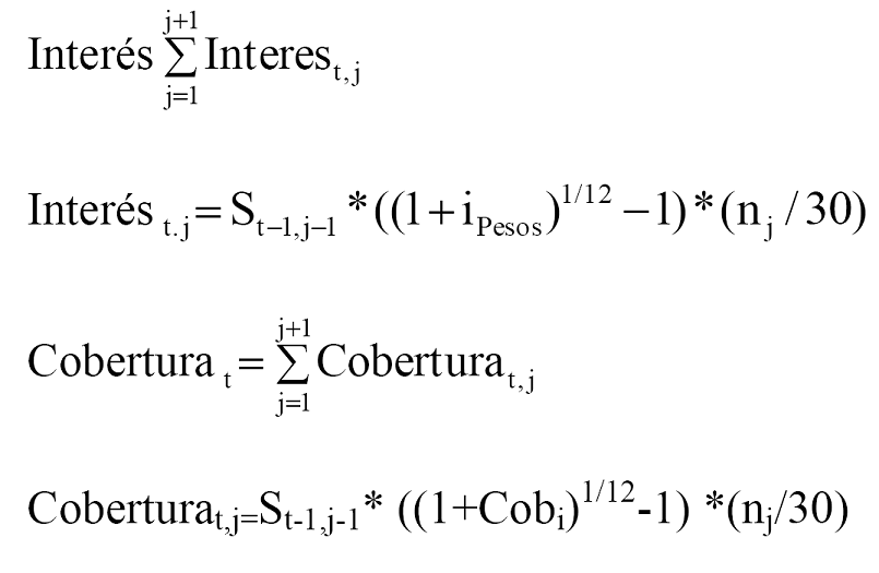 Interést = St-1* ((1+iPesos)1/12-1)* (nj/30)