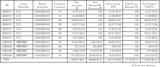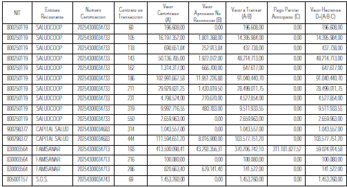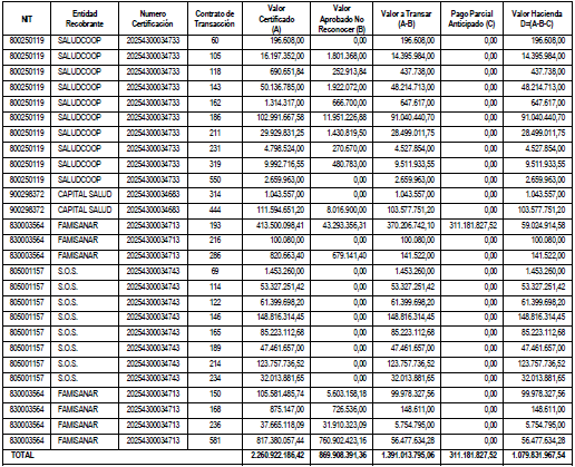 Los valores aprobados coinciden con lo estipulado en los contratos de transacción suscritos con la mencionada EPS, conforme a lo establecido en el Decreto número 521 de 2020, modificado por el Decreto número 1810 de 2020 y el Decreto número 507 de 2022.