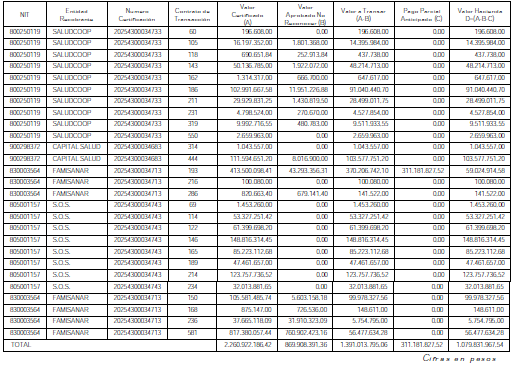 - FAMISANAR E.P.S., por un valor de $843.114.938,14.