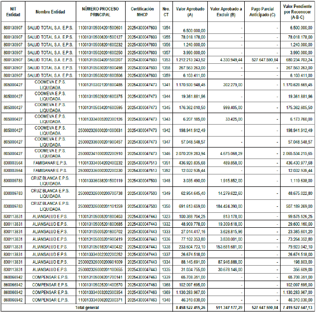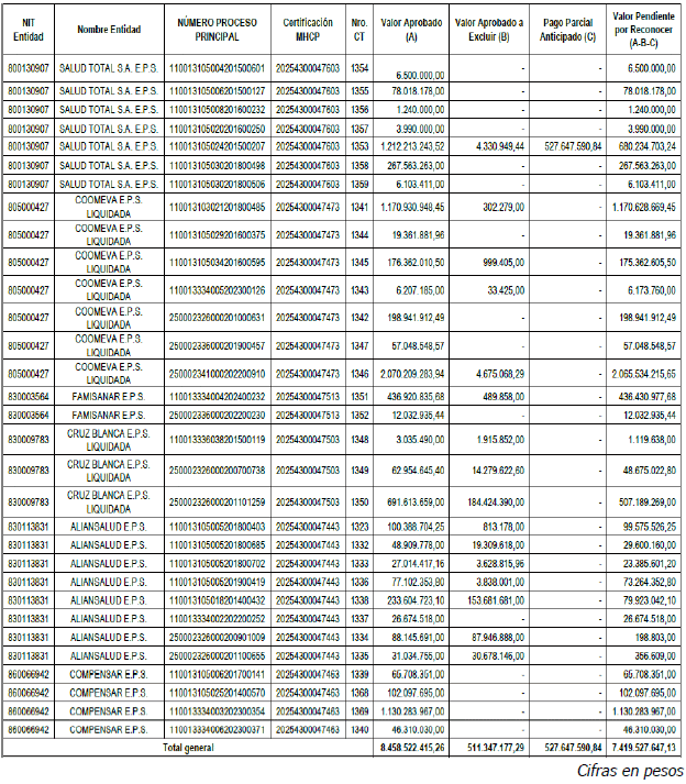 - Salud Total EPS, asciende a $1.043.649.555,24.