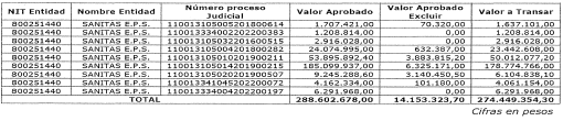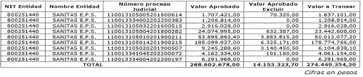 Los valores aprobados coinciden con lo estipulado en los contratos de transacción suscritos con la mencionada EPS, conforme a lo establecido en el Decreto número 521 de 2020, modificado por el Decreto número 1810 de 2020 y el Decreto número 507 de 2022. En consecuencia, el monto total que se debe disponer a la Adres para dar cumplimiento al Título III del Decreto número 521 de 2020 asciende a $274.449.354,30. (...)”.