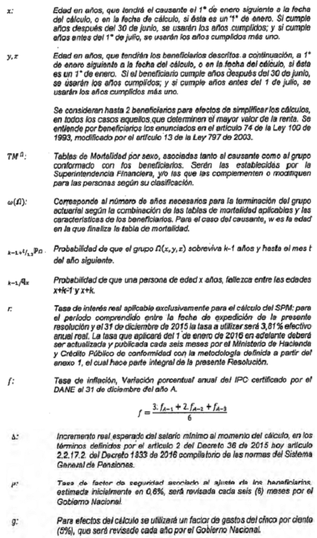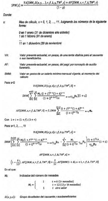 El Saldo de Pensión Mínima para efectos de la presente resolución se abreviará como SPM y se calculará de acuerdo con las siguientes fórmulas: