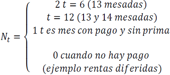 | M: | Valor en pesos de la mesada inicial (la asignada para enero del año del cálculo) o de la mesada inicial proyectada cuando se trate de rentas diferidas. |
