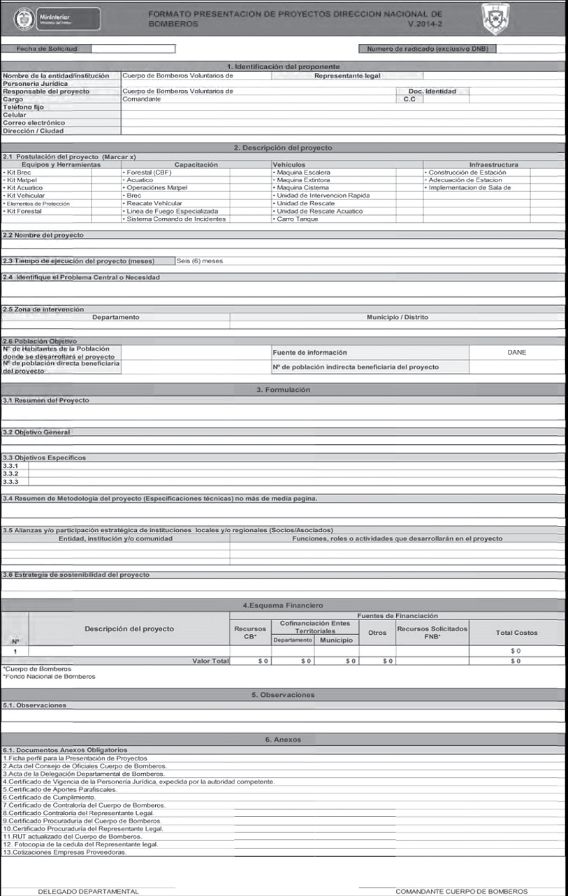 1. Solicitud formal presentada y radicada por la parte interesada a la Junta Departamental o Distrital de Bomberos.