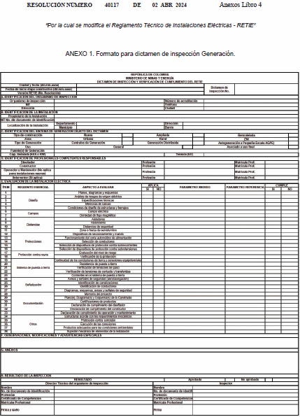 Después del 31 de diciembre de 2025, las instalaciones eléctricas deben cumplir los requisitos establecidos para cada uno de los alcances, de acuerdo con las disposiciones de la Resolución número 40117 de 2024 o la que modifique, adicione o derogue, y deben demostrar su conformidad según lo establecido en el Libro 4. Una vez finalice esta transitoriedad no se podrán seguir emitiendo dictámenes de inspección bajo la Resolución número 90708 de 2013.