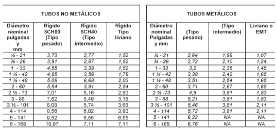 | 9 | Canalizaciones con barras o ductos con barras. |