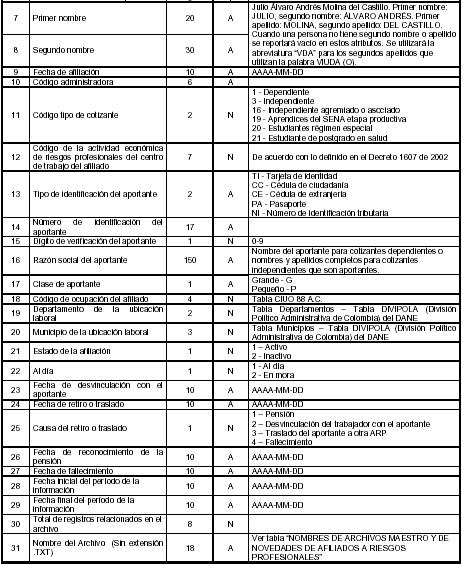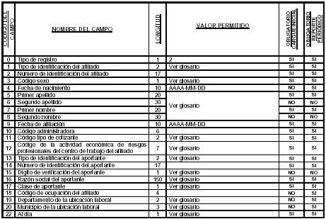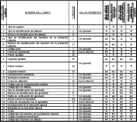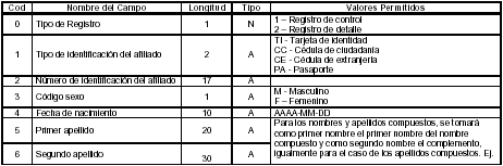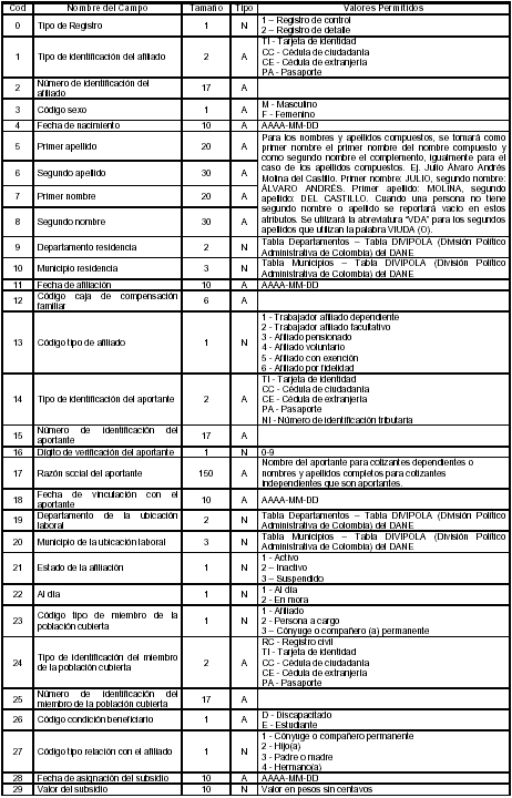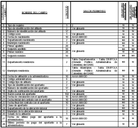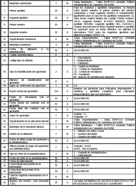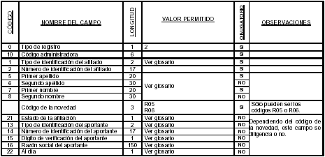 Las administradoras deberán enviar los archivos maestros de afiliados y el de novedades, de acuerdo con las estructuras y especificaciones que a continuación se describen: