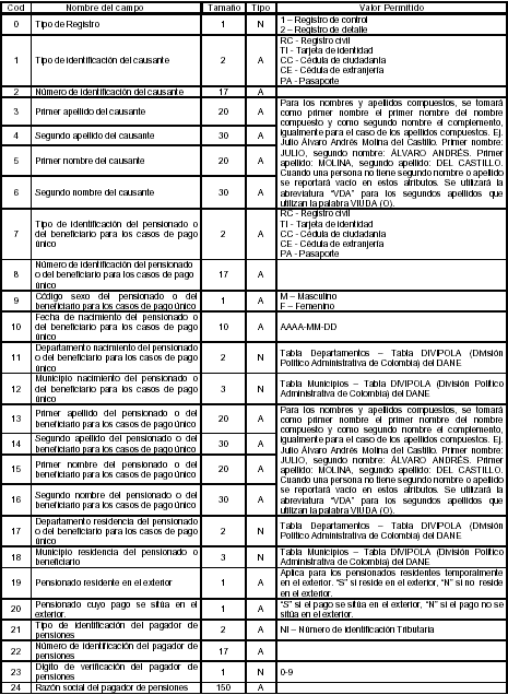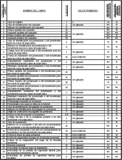 El archivo maestro de afiliados a pensiones está compuesto por un único registro de control (Registro Tipo 1) utilizado para verificar la información contenida en el archivo y un conjunto de registros de detalle (Registro Tipo 2) que contienen la información de los afiliados solicitados en la etapa del cargue inicial, así como para el reporte periódico de cr eación de nuevos afiliados a pensiones.