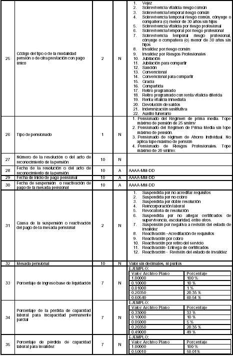 a) Anexo técnico de pensiones. Subsistema de Seguridad Social en Pensiones: Administradoras del Sistema General de Pensiones;