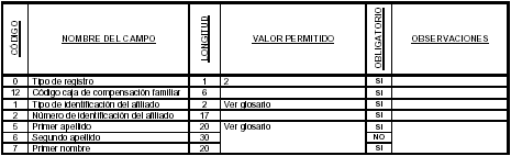 | 12 | Código caja de compensación familiar | 6 | Ver glosario | Sí |