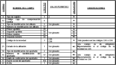 Este archivo de novedades deberá ser enviado obligatoriamente todos los períodos, así el estado de la afiliación y el estado del campo al día del aportante no haya cambiado respecto al período anterior.