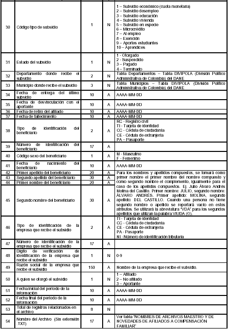 5.5 Estructura archivo de novedades de afiliados y subsidios de compensación familiar