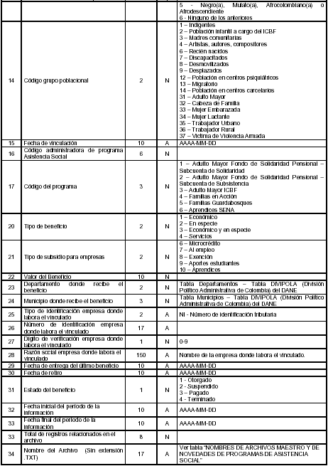 | NN | Archivo Maestro de novedades de vinculados a programas de Asistencia Social. | 2 |