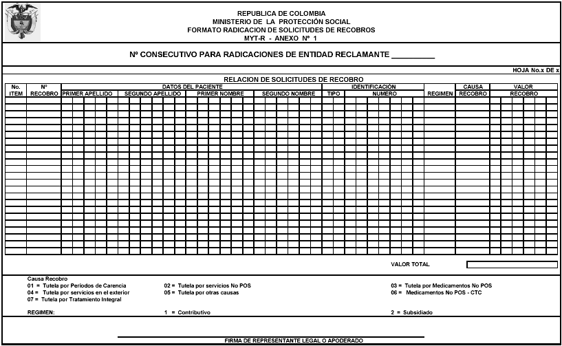 21. FIRMA DEL REPRESENTANTE LEGAL O APODERADO: El formato MYT-03 debe estar firmado por el representante legal de la entidad reclamante o por su apoderado, con poder debidamente otorgado.