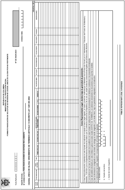 FORMATO RADICACION DE SOLICITUD DE REVISION DE GLOSAUNICA ART. 13 DECRETO LEY 1281 DE 2002 SOBRE RECOBROS RADICADOS ENTRE EL 20 DEDICIEMBRE DE 2002 AL 20 DE NOVIEMBRE DE 2004