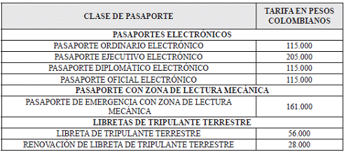 ARTÍCULO 2o. TARIFAS PARA LA EXPEDICIÓN DE PASAPORTES. <Resolución derogada por el artículo de la Resolución 9593 de 2022>
