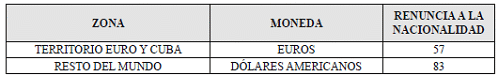 a) Cuando los recaudos para el Fondo Rotatorio del Ministerio de Relaciones Exteriores y el Impuesto de Timbre se cancelen en una moneda diferente al Euro o Dólar de los Estados Unidos de América, la tasa de cambio para la conversión de Euros o Dólares Americanos a la moneda de pago local, la fijará el Jefe de cada Misión Diplomática, tomando como base la tasa de cambio promedio del último cuatrimestre;