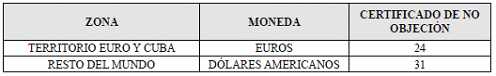 b) En el exterior: La tarifa para el trámite del certificado de no objeción a la permanencia en el exterior, solicitados en el exterior, es: