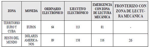 b) En el exterior: Las tarifas por concepto de la expedición de pasaportes en el exterior, son: