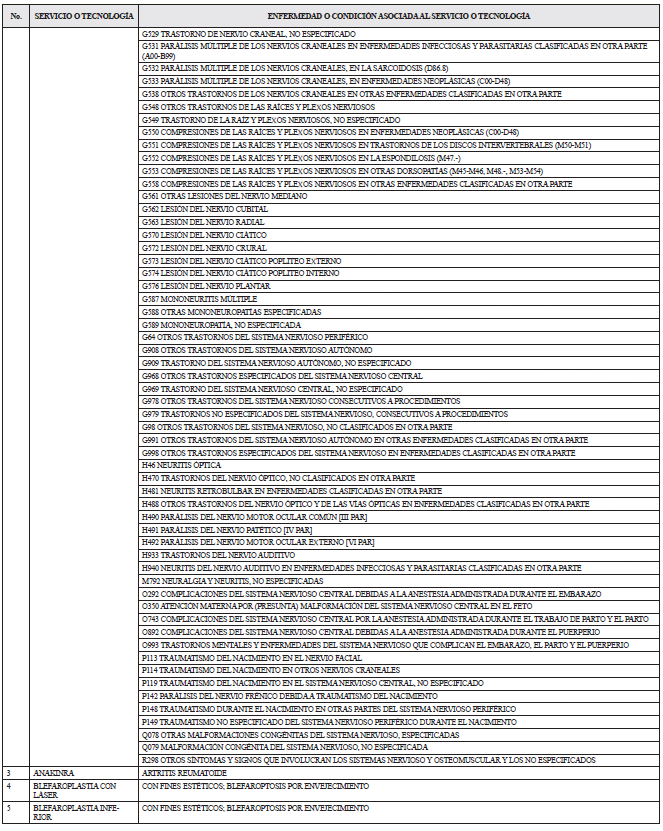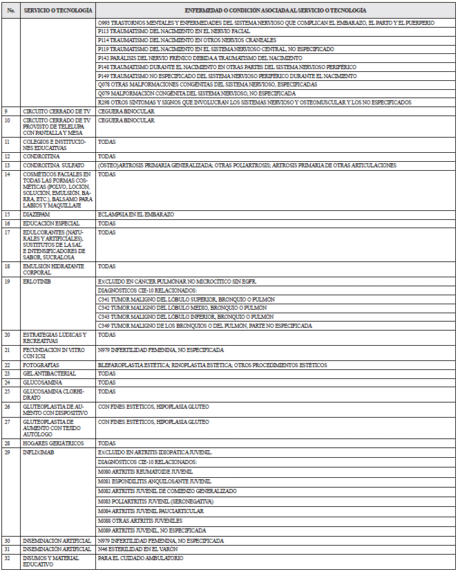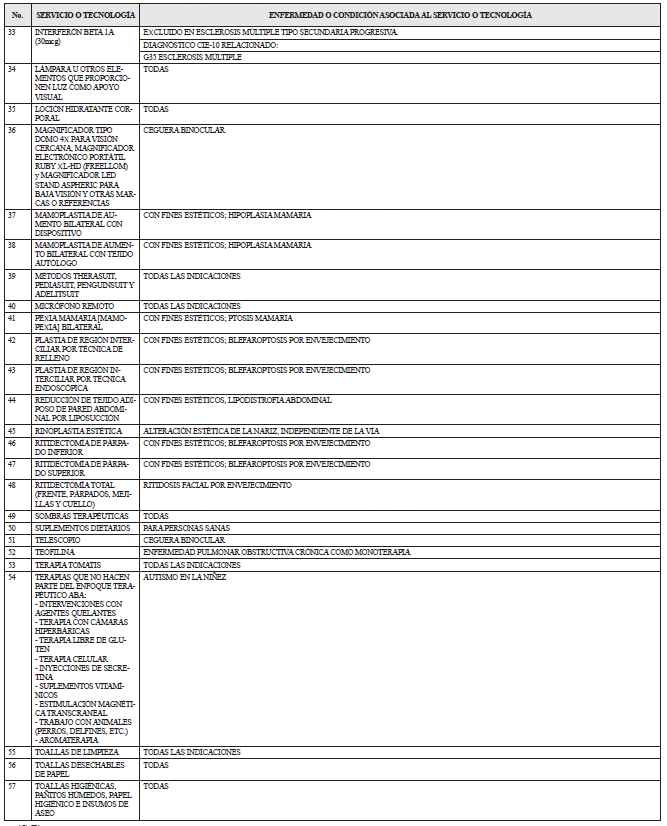 LISTADO DE SERVICIOS Y TECNOLOGÍAS QUE SERÁN EXCLUIDAS DE LA FINANCIACIÓN CON RECURSOS PÚBLICOS ASIGNADOS A LA SALUD.