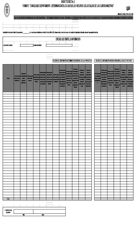 Este formato deberá acompañarse con el establecido en el Anexo No. 1 de la presente resolución, debidamente reportado por los municipios del respectivo departamento.