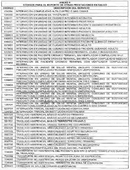 CÓDIGOS PARA EL REPORTE DE OTRAS PRESTACIONES EN SALUD