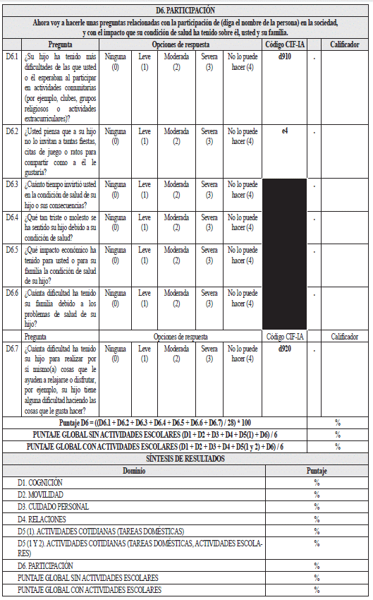 2.1.2.1.2.3. Instrumento para la valoración de limitaciones en las actividades y restricciones en la participación para personas entre 6 y 17 años de edad