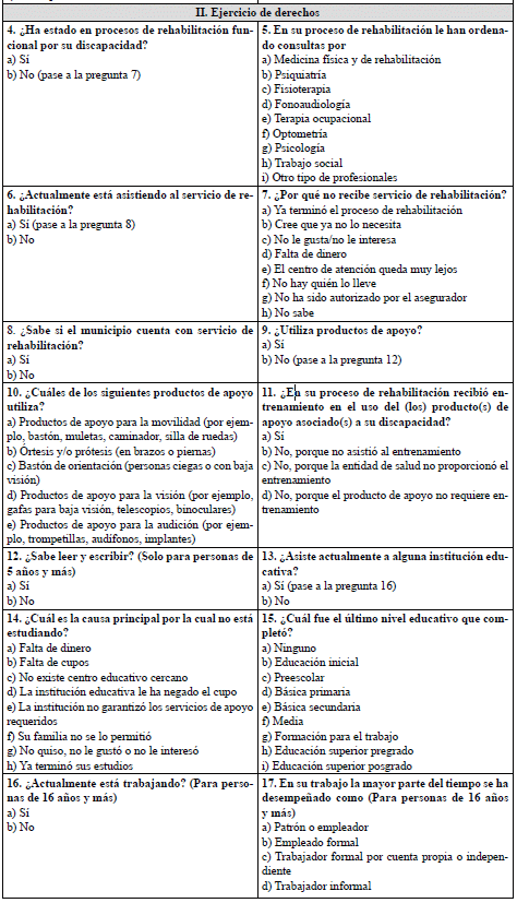Esta información se obtiene de la síntesis de resultados del instrumento de valoración de limitaciones en las actividades y restricciones en la participación en sus versiones para personas entre 6 y 17 años y para personas de 18 años en adelante.