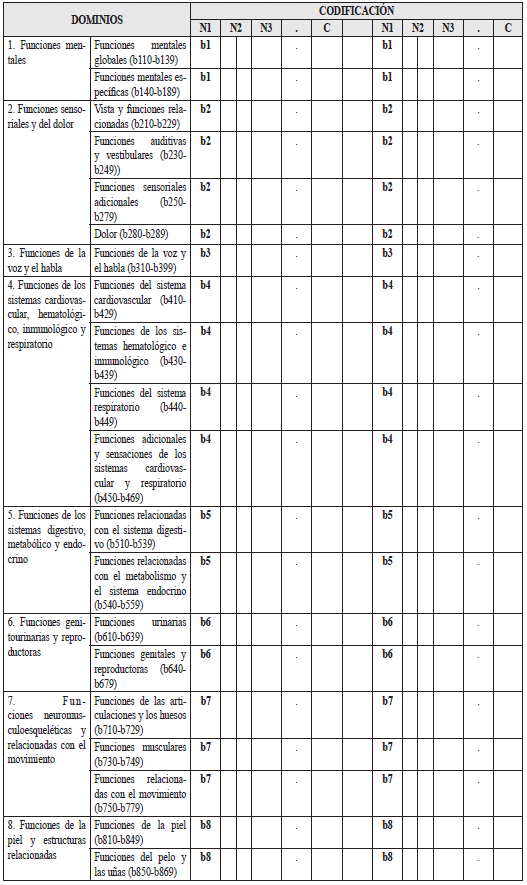 Los códigos CIF de las preguntas que reciban un calificador entre 1 y 4 deberán registrarse en la tabla del “Criterio funciones corporales (b) del perfil de funcionamiento” (tabla 3). Se debe registrar tanto el código como el calificador teniendo en cuenta los siguientes casos especiales: