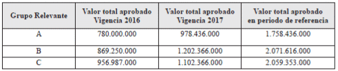 2.1 Del universo de solicitudes en estado de recobro/cobro aprobado, se toma el valor total recobrado/cobrado para cada grupo relevante en las dos últimas vigencias del período de referencia. La fecha que le corresponde a cada registro de la base es la de la fecha de prestación de servicio.