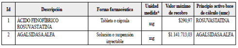 Listado de grupos relevantes con valores máximos para para el reconocimiento y pago de servicios y tecnologías no financiados con la Unidad de Pago por Capitación.