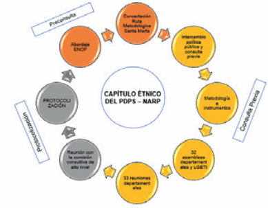 Para su elaboración se tuvieron en cuenta los contenidos de los capítulos diferenciales de los pueblos y comunidades indígenas, de la población Víctima del Conflicto Armado y del Pueblo Rrom adoptados en las mencionadas resoluciones y los resultados de la consulta previa con las comunidades Negras, Afrocolombianas, Raizales y Palenqueras (NARP).