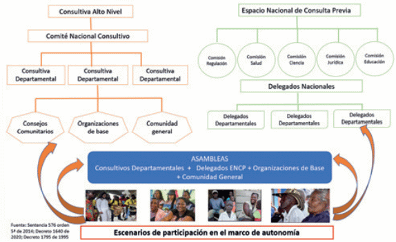 53 "El marco democrático participativo, como elemento esencial de la Constitución de 1991, hace referencia a las bases fundacionales que en ella se encuentran contenidas en lo relativo al ejercicio de la participación política que conduce a la realización del principio democrático en el proceso decisorio del Estado colombiano. Es decir, el marco democrático participativo está compuesto por los elementos normativos a partir de los que se establece quiénes y en qué condiciones cuentan con la posibilidad de participar en la sociedad política que toma las decisiones de razón pública en el marco jurídico del Estado colombiano" Corte Constitucional. 2014. Sentencia C-577 de 2014. https://www.alcaldiabogota.gov.co/sisjur/listados/tematica2.jsp?subtema=29851&cadena=&msclkid=5b43c45bd06e11ecb7a 7d1cc9921760f